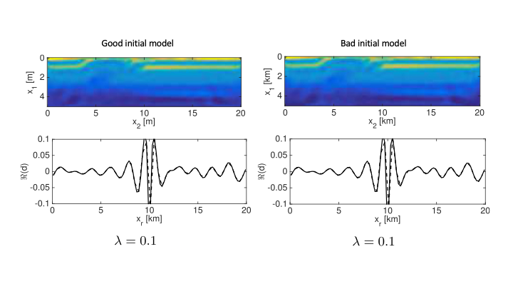 $$\left(A^*\!A + \rho^{-1}P^*\!P\right)u = A^*q + \rho^{-1}P^*d.$$van Leeuwen, Tristan, Peter Jan van Leeuwen, and Sergiy Zhuk. "Data-Driven Modeling for Wave-Propagation." ENUMATH. 2019.↩
